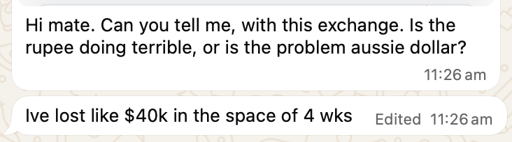 “Is the rupee doing terrible, or is the problem the Aussie dollar?”
