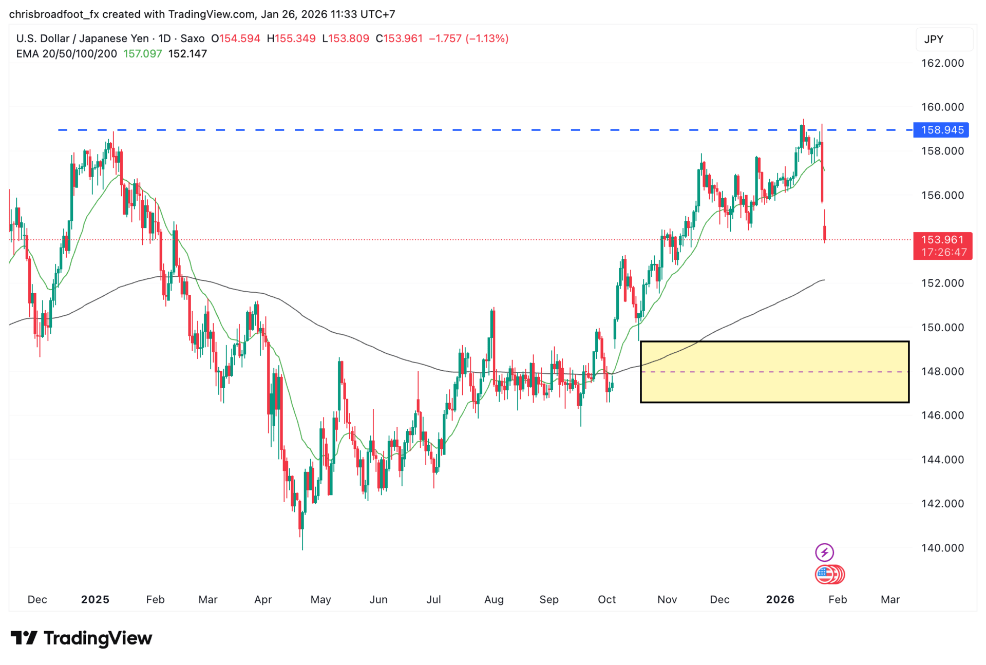 USD/JPY - Daily Chart - Selling off from the 2025 highs