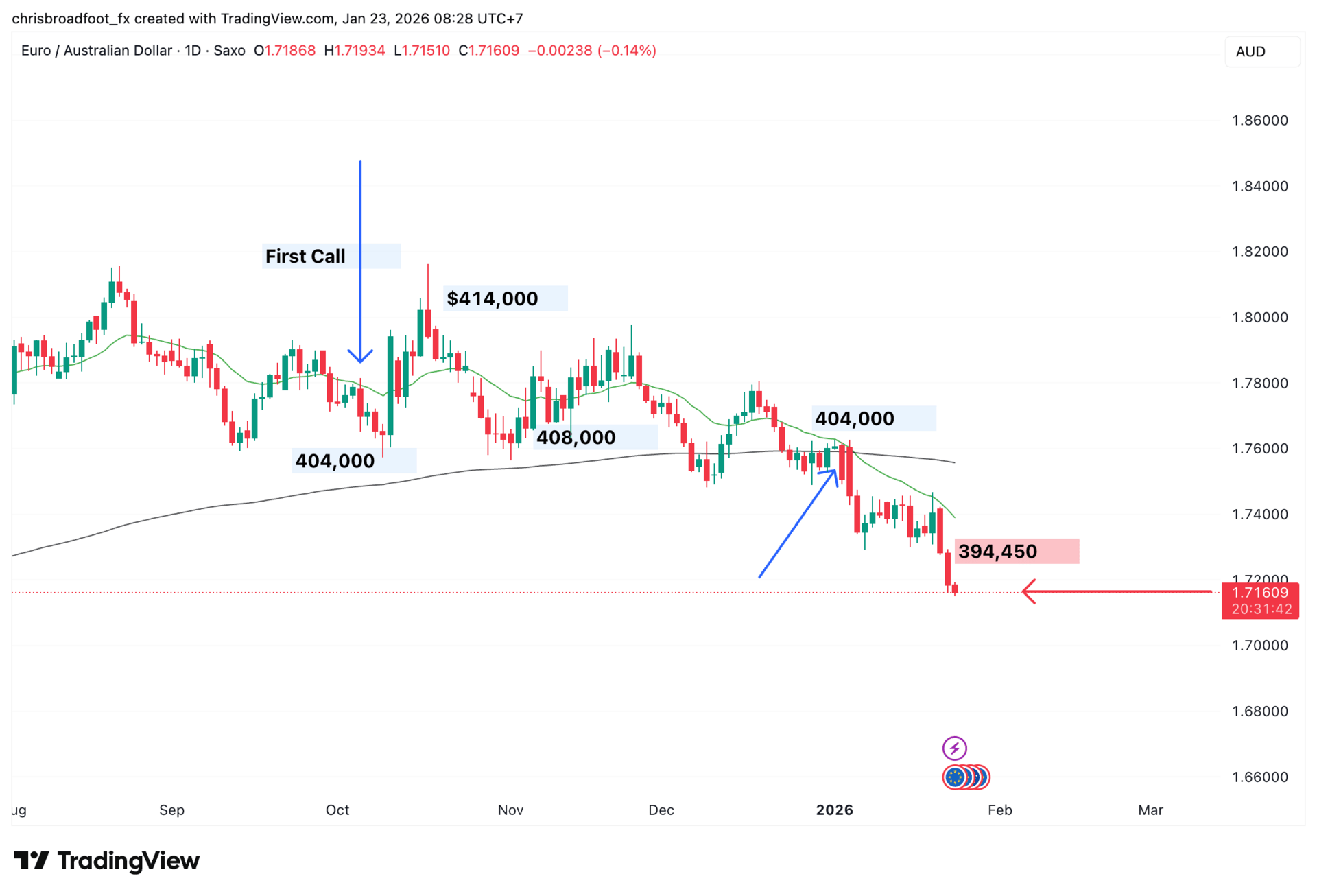 At the time of our first call, that exposure was worth around $404,000 AUD. You can see that level clearly on the chart.