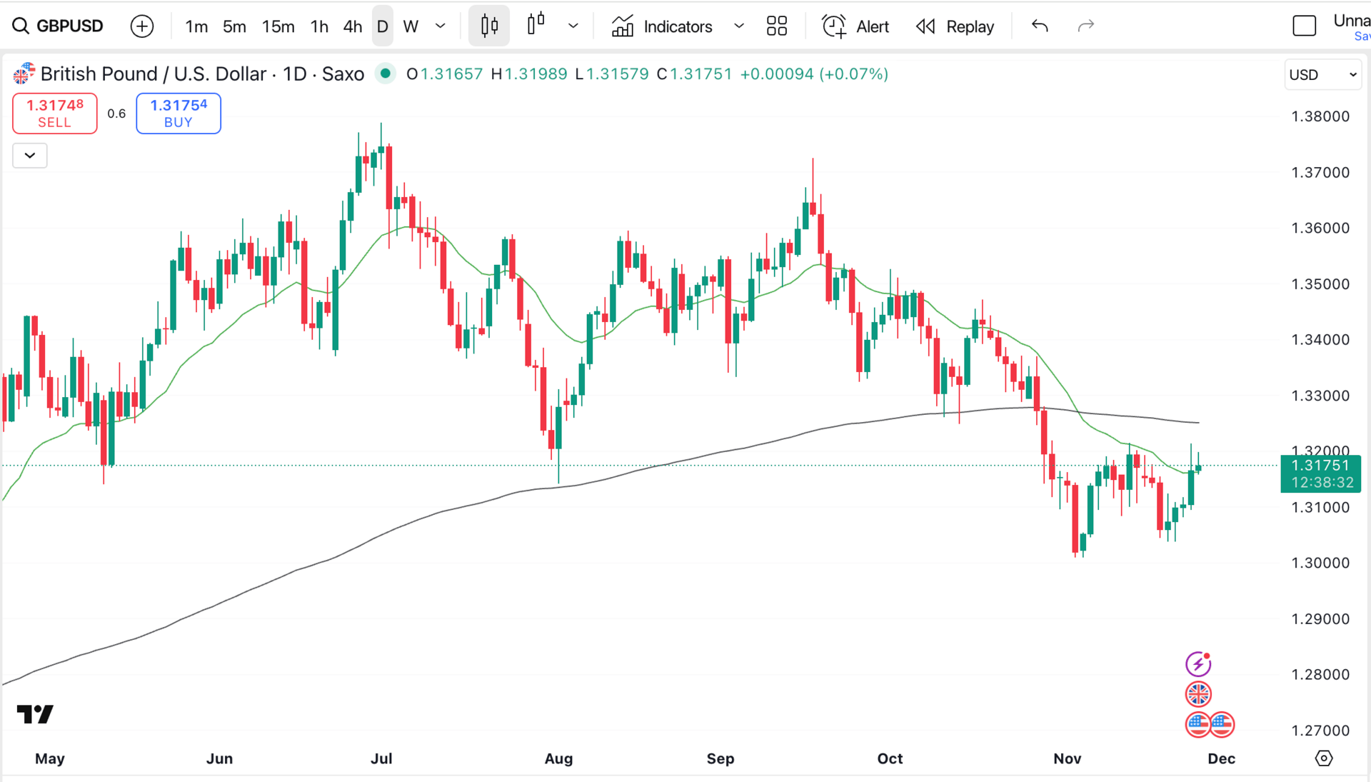 In the short term, GBP can move sharply around Budget releases. The pound is currently holding steady against most major currencies. GBPUSD is trading around the 1.318 area.