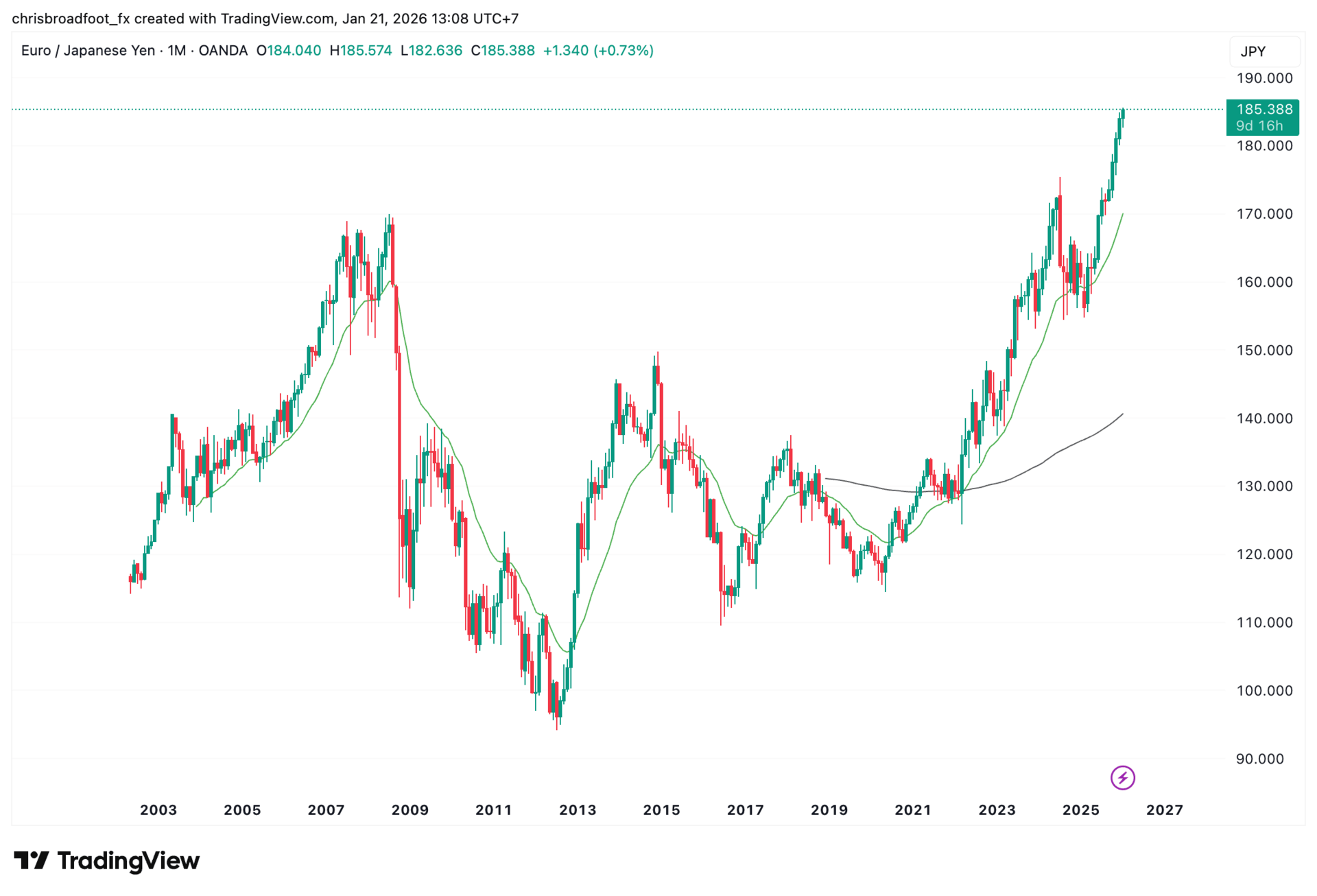 EUR/JPY - Monthly Chart - 2003-2026