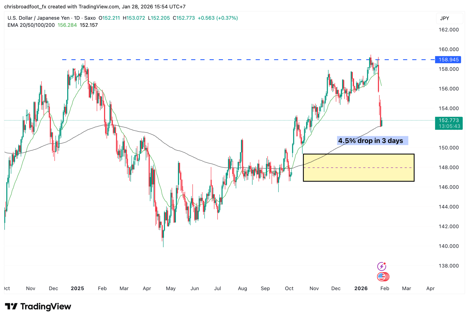 USD/JPY Daily Chart - 4.5% Drop in 3 days.