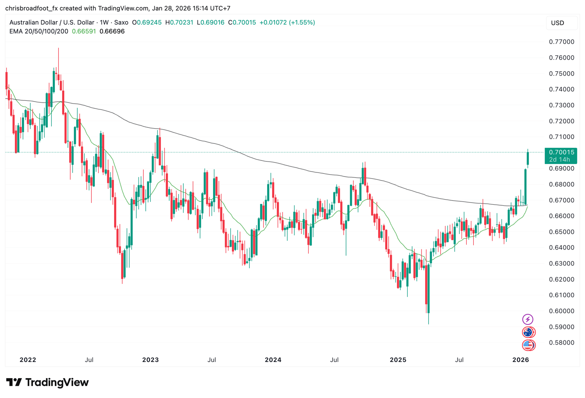 This is why AUD/USD is now testing the 0.70 level for the first time since early 2023.